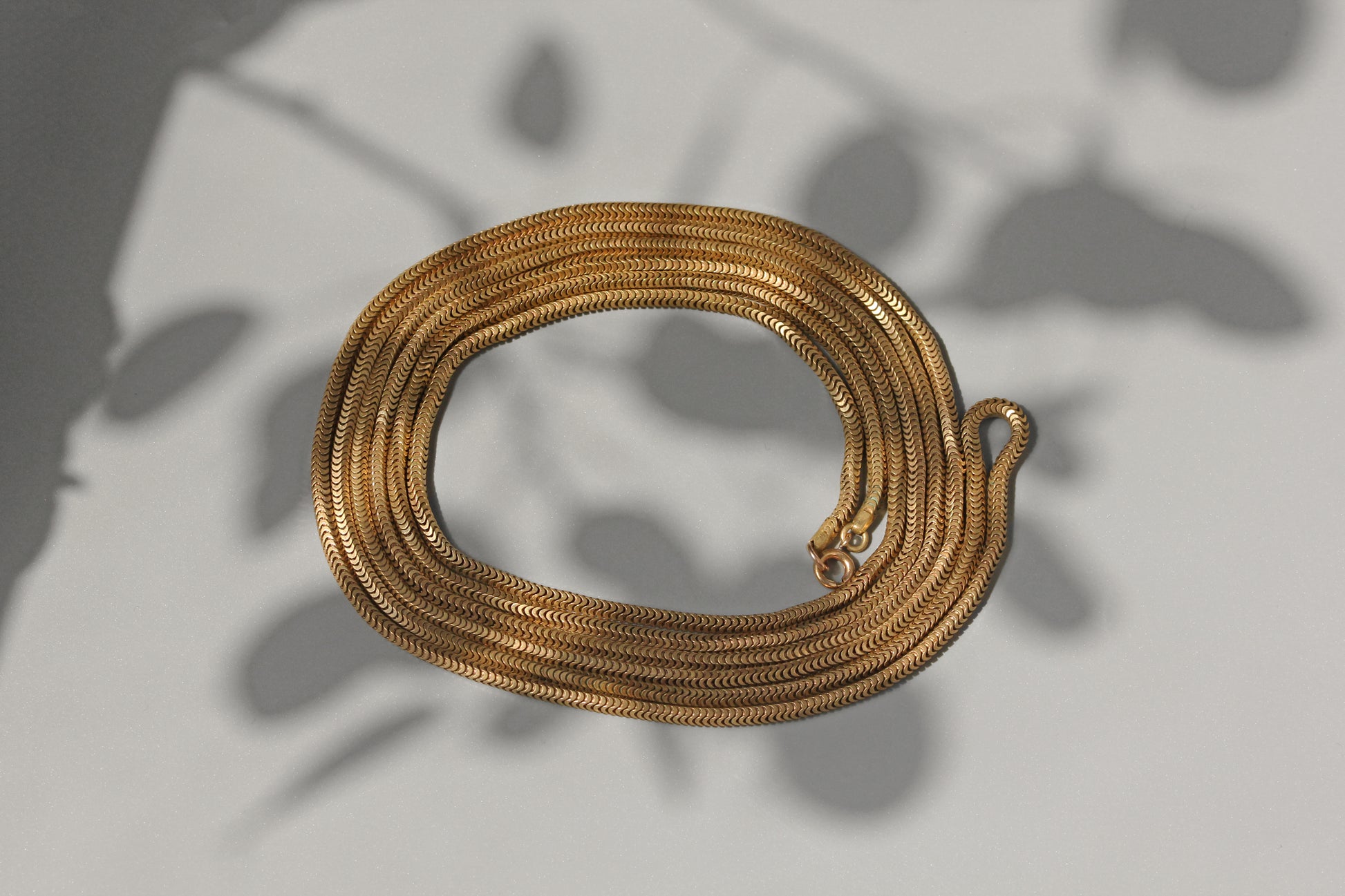 Antique snake link 70" necklace chain, in gold pinchbeck