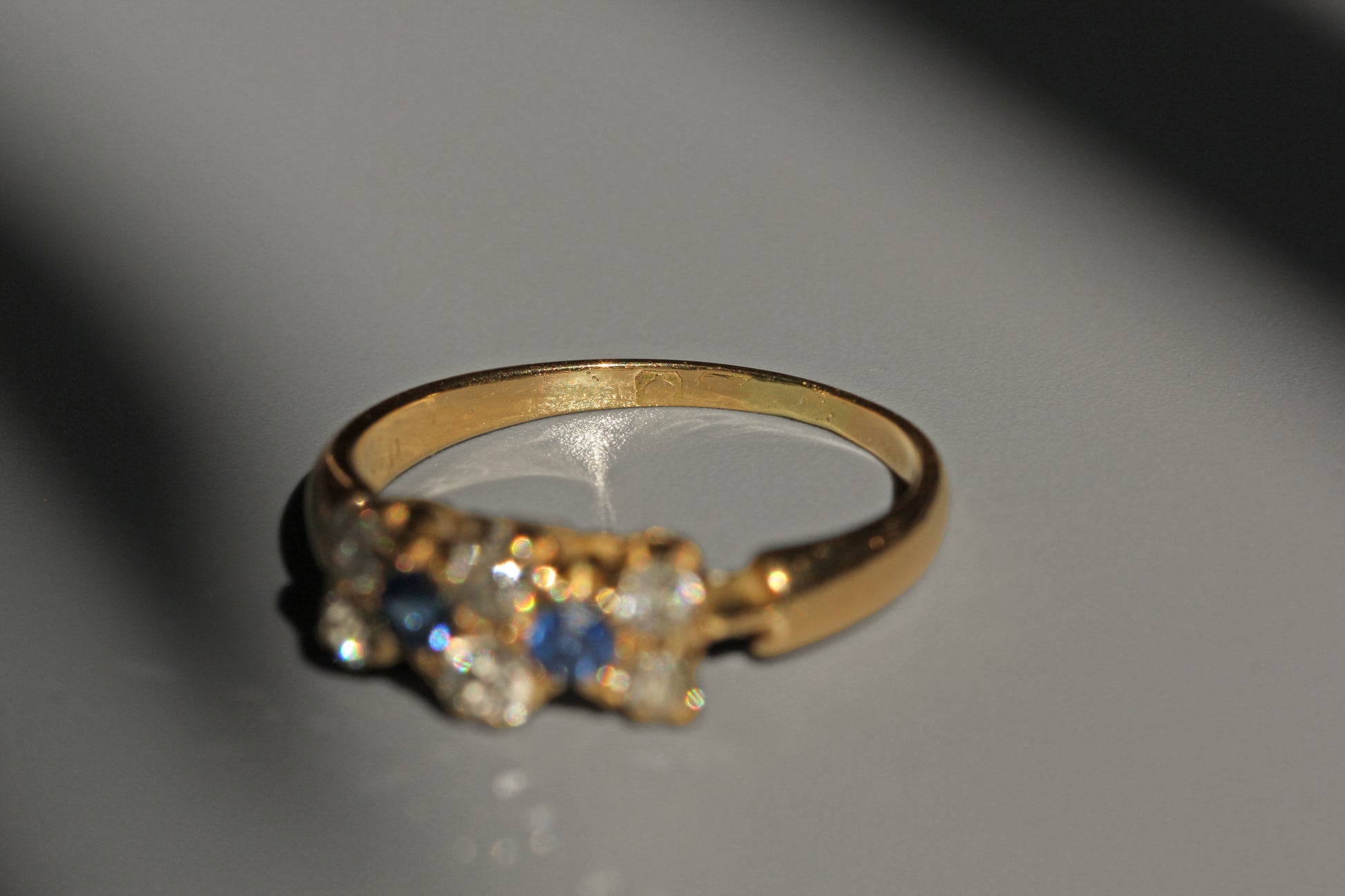 Antique art deco sapphire and old cut diamond ring, in 18 carat gold