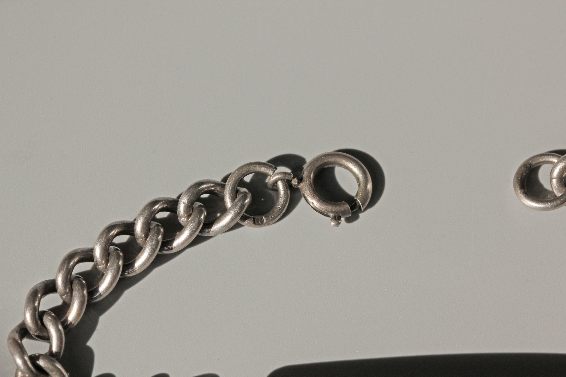The lion passant is stamped on every link, each link measuring 6.9mm x 3.8mm. Finished with a bolt ring, this chain oozes a classic, antique inspired feel. The first ID bracelets were worn by American servicemen during World War II as part of their uniform. They started out as bent metal bands or heavy chains with a metal plate. These bands or plates were engraved with name, rank and serial number and was a means to identify the soldier. Nowadays, these bracelets are one of the most popular choices for personalised jewellery.