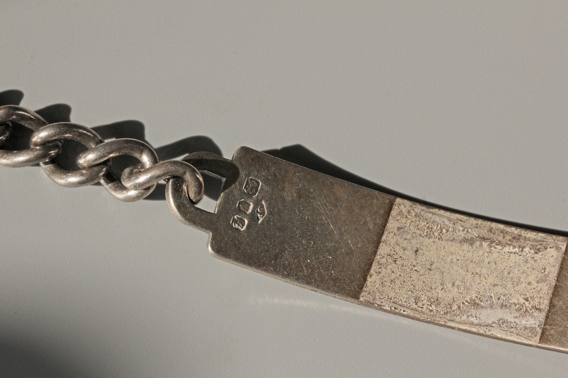 A lovely chunky sterling silver identity bracelet, hallmarked for 1975. This piece has a sturdy, heavy feel to it, the curb links crafted in solid silver with the large identity panel which is blank and ready to be engraved.