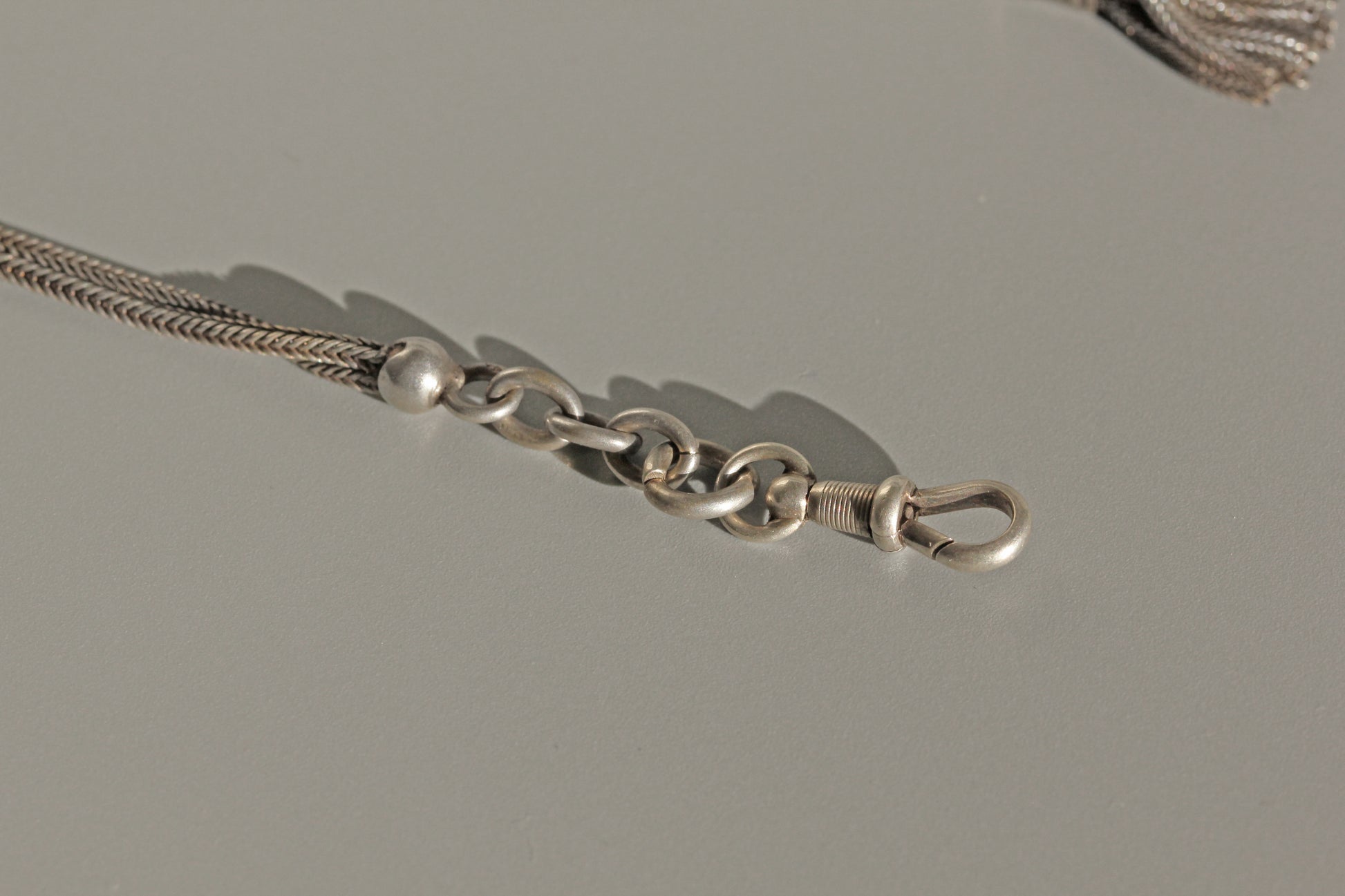 Antique victorian albertina chain with tassel, in sterling silver