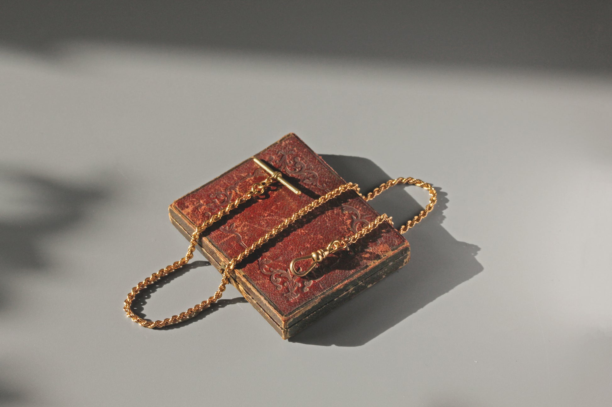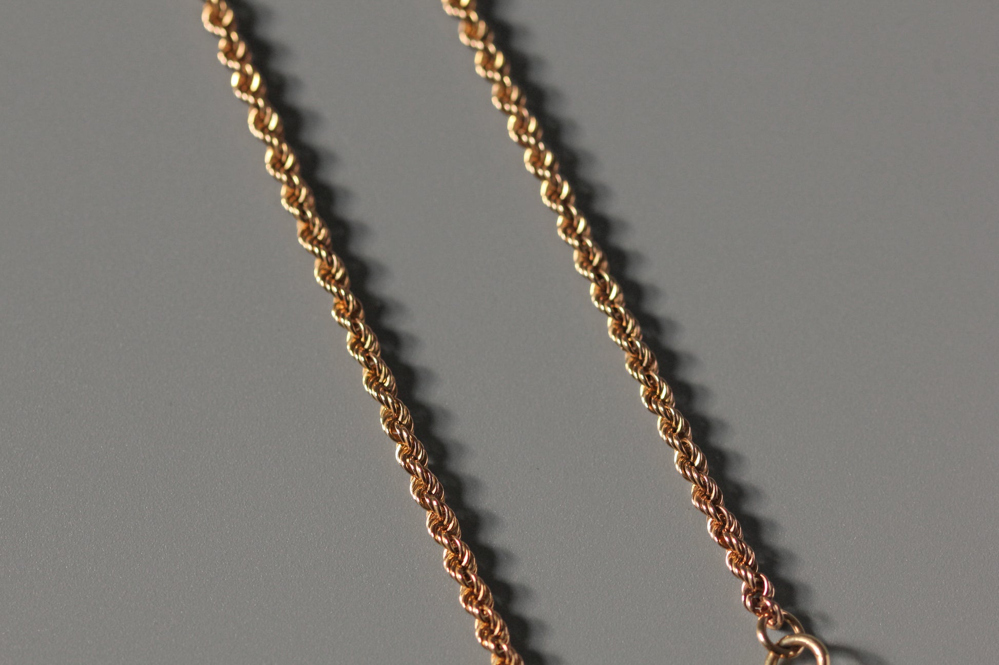 Antique victorian rope link twist chain with T-bar, in 9 carat gold