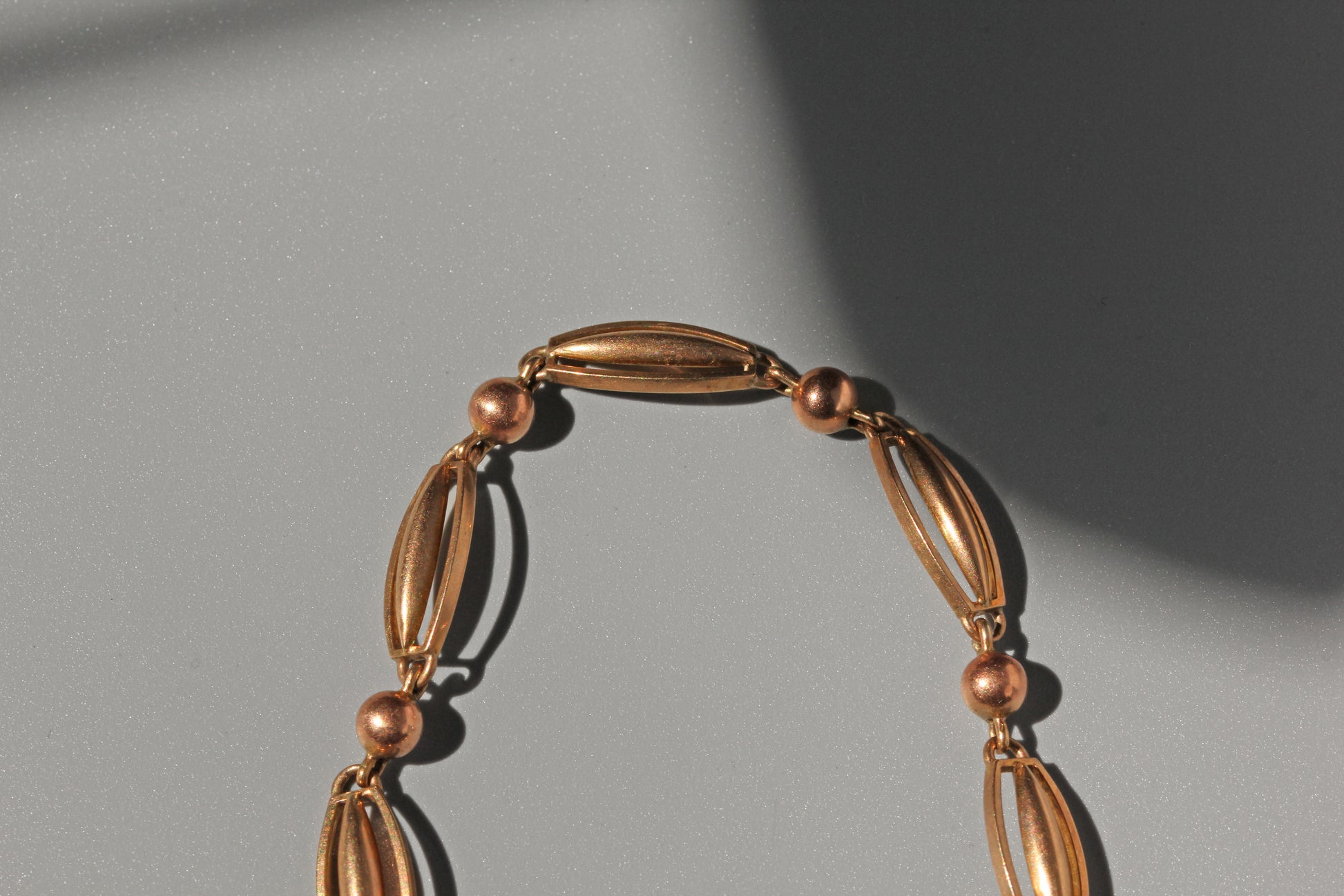 Hallmarked 9CT and with a makers mark D&F for Deakin and Francis, a family run renowned jewellers from Birmingham, founded in 1786. A unique and versatile piece, this lovely bracelet has an elegant yet playful aura to it.