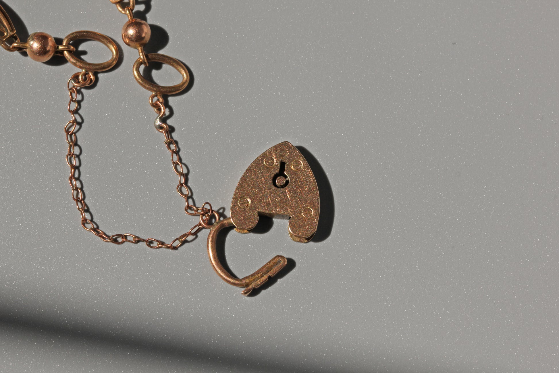 Antique victorian fancy link bracelet with heart padlock, in 9 carat gold