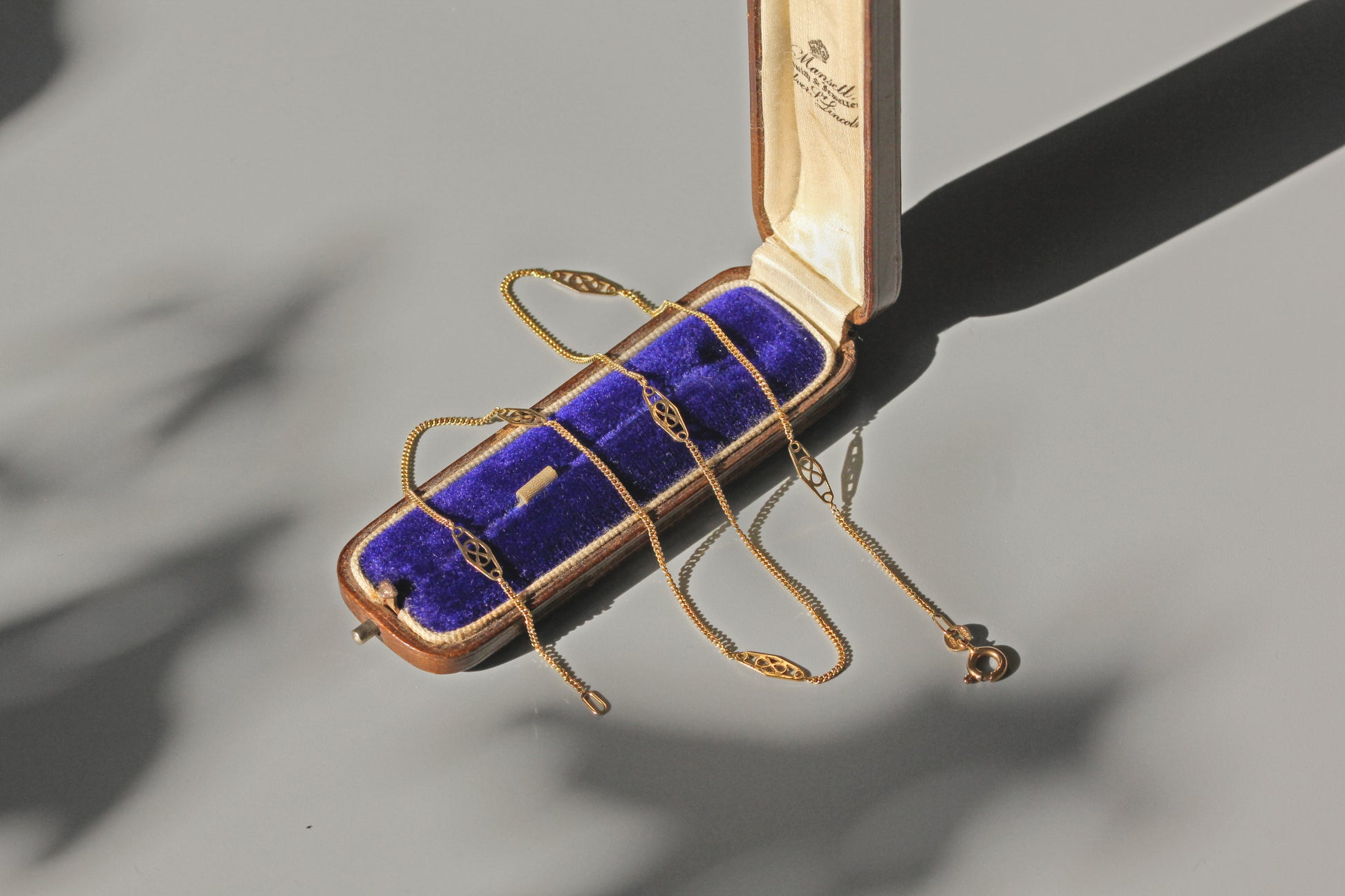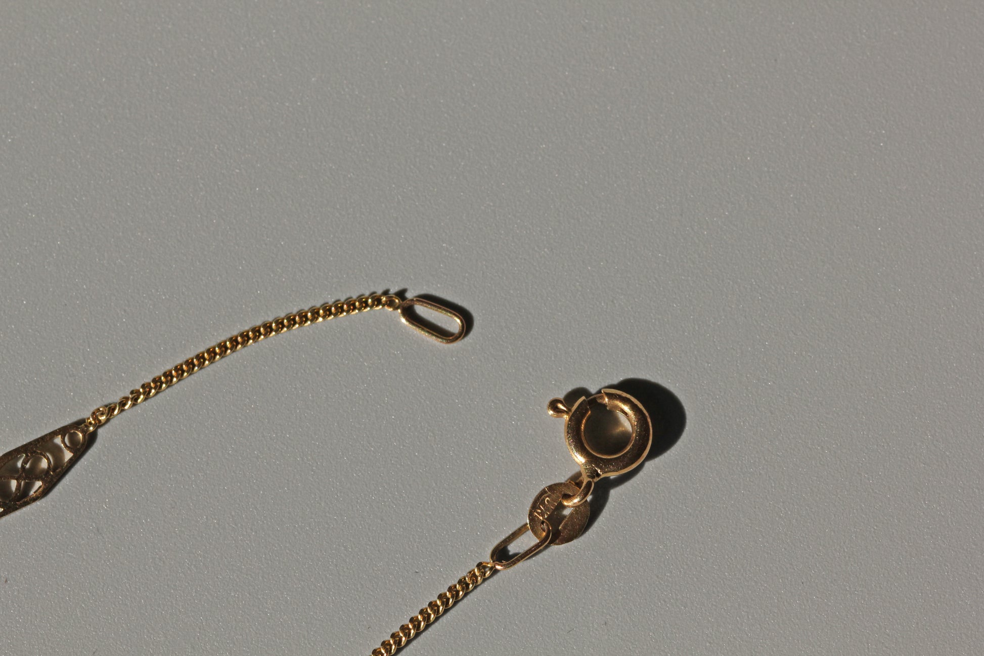 Vintage dainty fine curb link station chain, in 9 carat gold