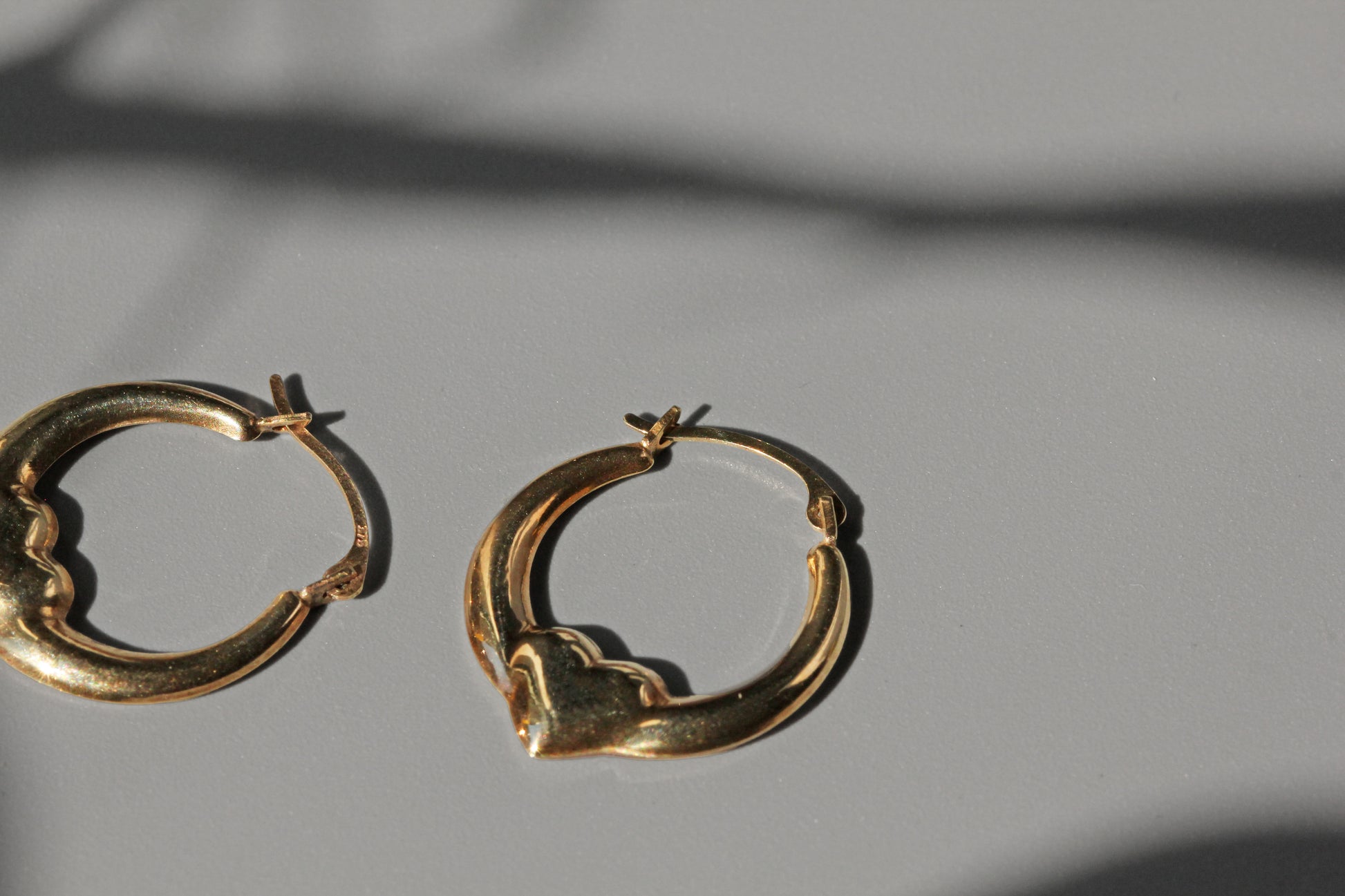 Vintage heart hoop earrings, in 9 carat gold