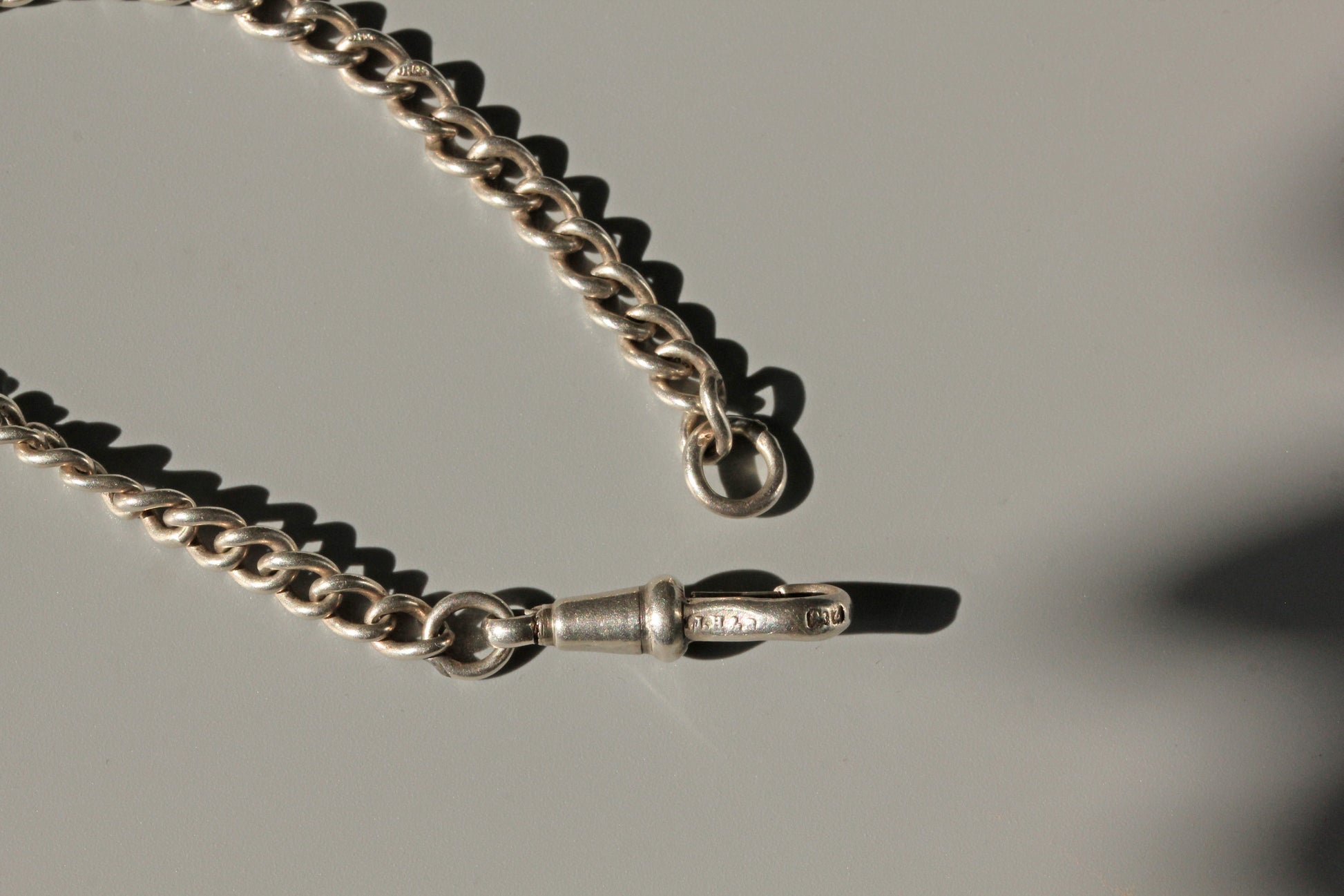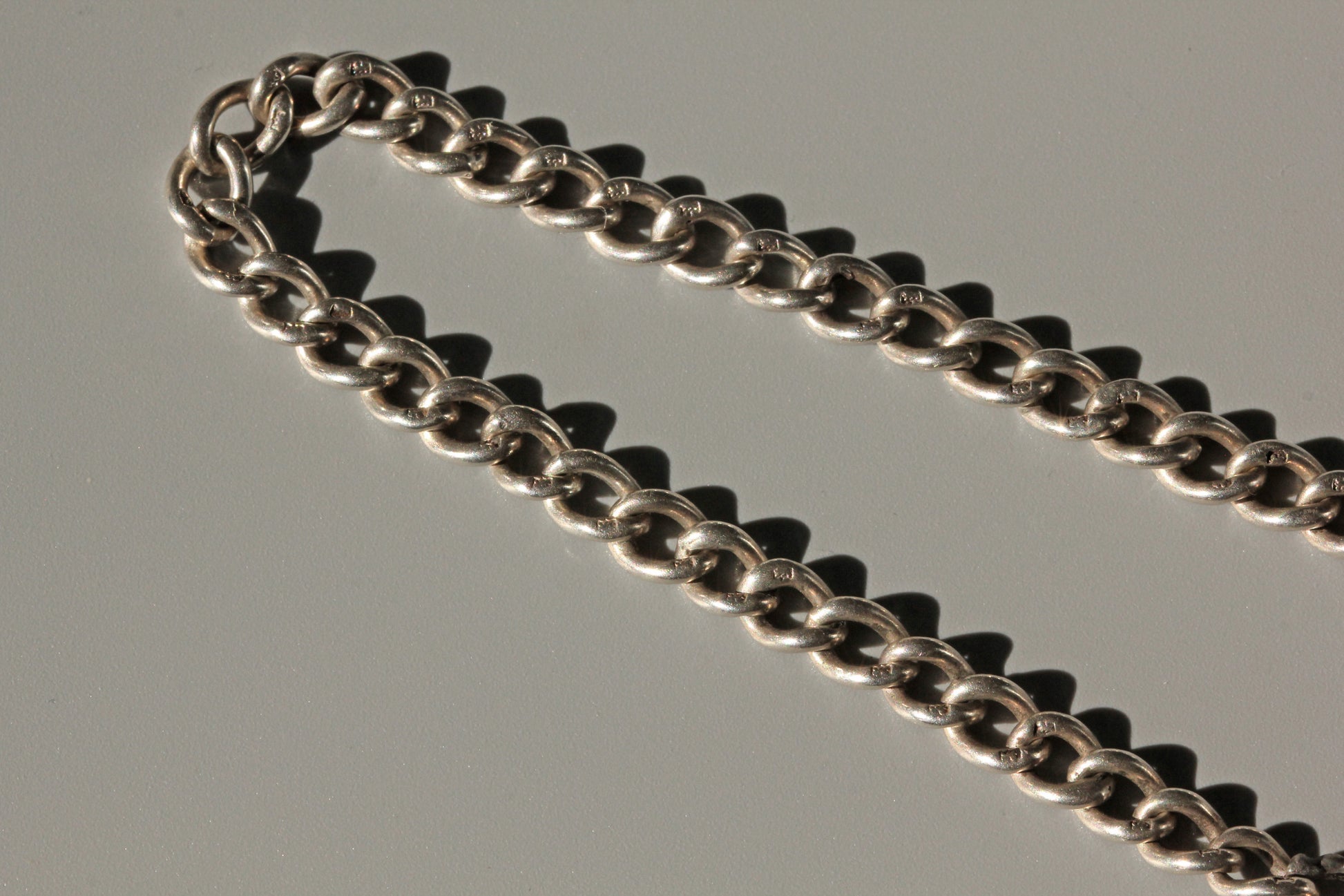 A gorgeous cool toned piece crafted in solid sterling silver, hallmarked for 1924. This piece measures 19.5cm and features a lovely curb link, hallmarked with the lion passant on every link.