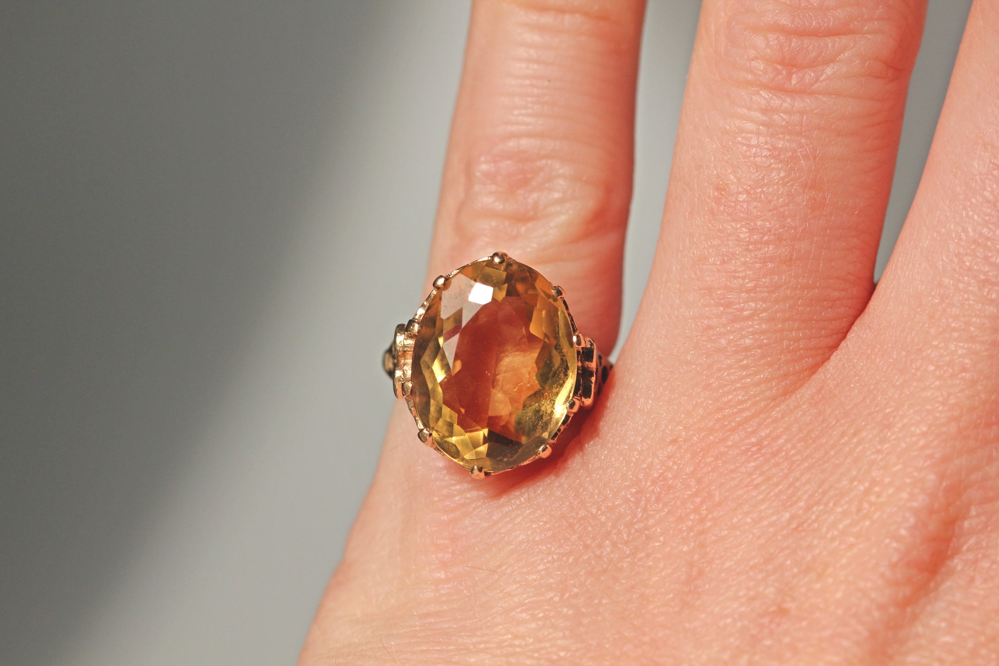 This piece is in stunning vintage condition, signs of use and wear as expected with age. Citrine in great condition with minimal wear, secure in its setting. Band is in great condition with minor wear and tarnishing.